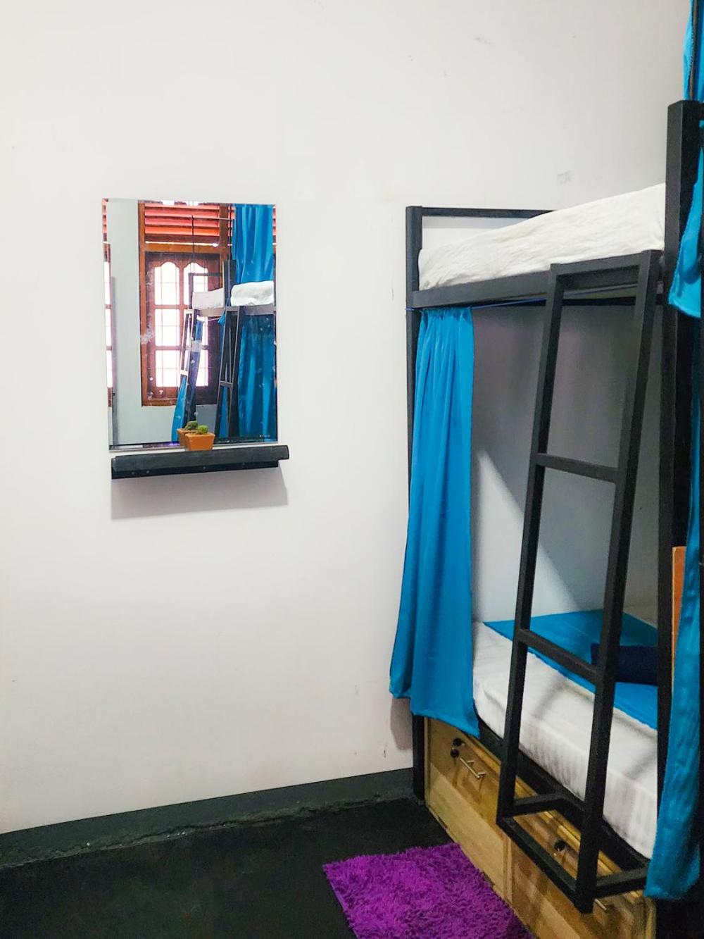 The rooms at the hostel are fitted with a seating area.guest rooms at Evoke Hostels, Hiriketiya beach come with a shared bathroom fitted with a shower.